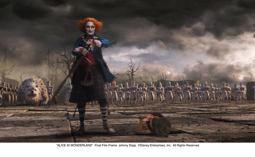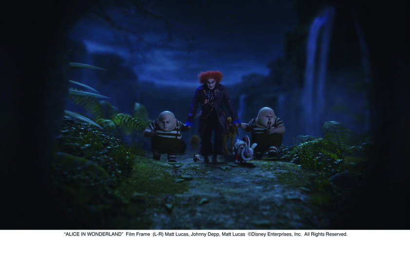 A v podstatě tím začíná také zábava pro Tima Burtona. Americký režisér si libuje v ukazování všemožných podivností a vizuálních atrakcí (stačí vzpomenout na Karlíka a továrnu na čokoládu, Mrtvou nevěstu nebo Velkou rybu), přičemž Alenka mu v tomto ohledu dodává takřka neomezené možnosti. Květiny s lidskými obličeji, dvojice hádavých buřtíků, armáda složená z karet, šílení králíci. Zmatek a pestrobarevná zákoutí tu jdou ruku v ruce, a tak Burton může předvádět to, co mu jde nejlépe - komponování atraktivní mizanscény.