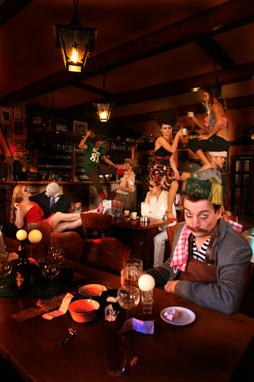 Nesmazatelným přínosem projektu je propojení a zdeformování zdánlivě neslučitelných světů různých disciplín. Akrobaté nejsou navlečení do přiléhavých oblečků, ale přestrojení za typické hospodské umaštěné pupkáče a rozehrávají náročnou klauniádu; špičkoví skokani na trampolíně asi také na závodech nepředvádějí krkolomné divadelní "pády na hlavu", i kdyby byli sebevíc opilí láskou... Taneční čísla představení, zvláště to neobyčejné s obyčejnou koženou kabelou, jsou jedním z mála zklidňujících momentů. Jinak se to ale na vás valí jedna radost, číslo za číslem, "elá hop, elá hop", po každém následuje tak nějak samozřejmý potlesk...