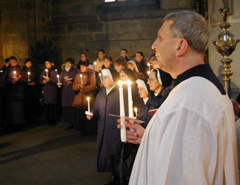 „Ten svátek také je vnímán – to je relativně moderní vnímání toho svátku – jako svátek zasvěcených osob, a to především kvůli té prorokyni Anně, která poté, co ovdověla, přes 60 let byla v jeruzalémském chrámě a sloužila Bohu postem a modlitbami. A stejně tak ten spravedlivý stařec Simeon. A tito dva se vnímají jako zasvěcené osoby. A samozřejmě je tam i to zasvěcení prvorozence Bohu, což zas bylo podle jiného místa v mojžíšském zákoně podle knihy Exodus. Takže z těchto dvou důvodů – kvůli prorokyni Anně a proroku Simeonovi a zasvěcení prvorozence Bohu – je ten svátek také svátkem zasvěcených osob, především osob žijících řeholní život, ne úplně všech kněží. Kněží jsou sice také zasvěceni Bohu svými sliby, a nesou svátost svěcení, ale tento svátek je především svátkem řeholníků a řeholnic.“