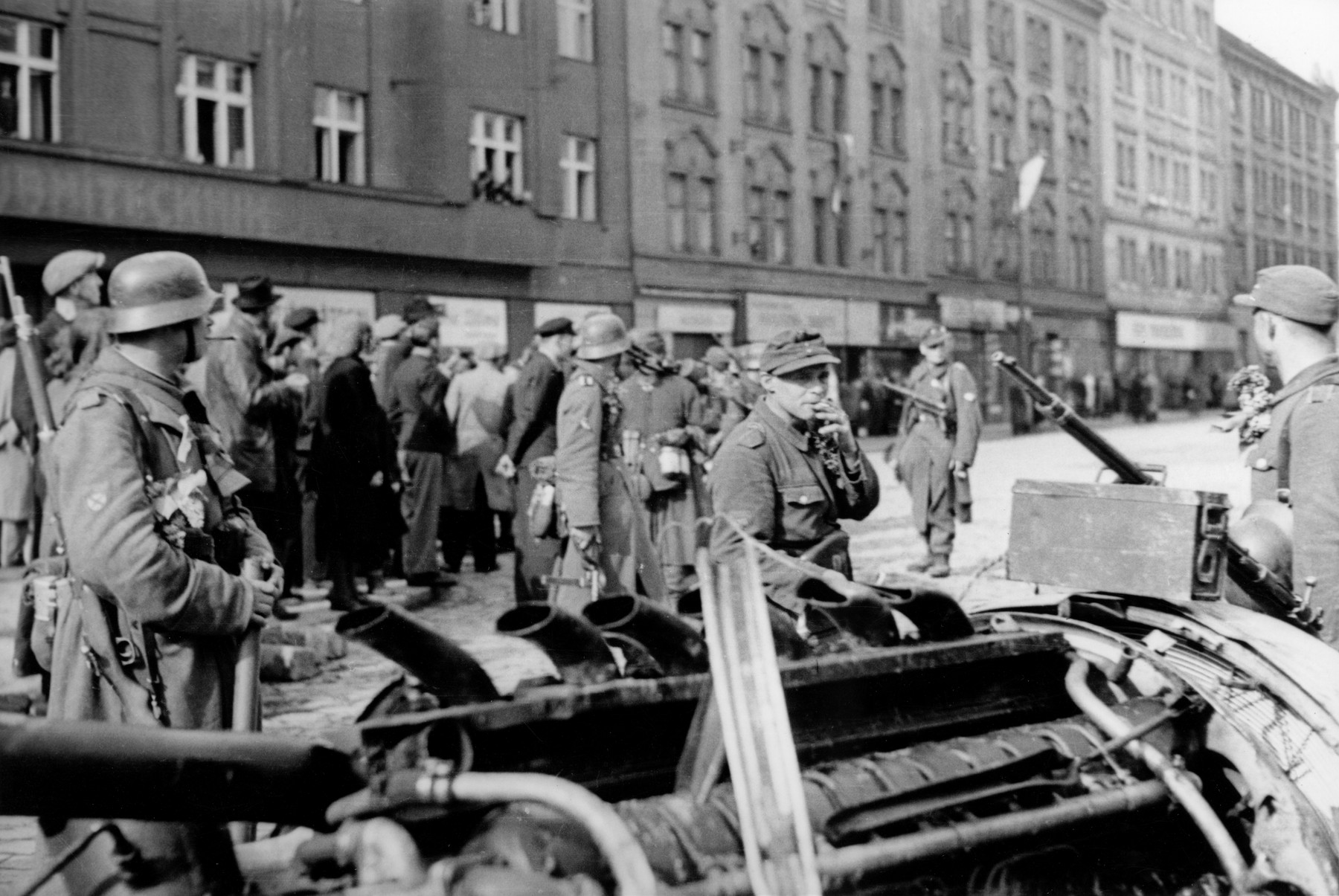 Pamatuje si, jak po kapitulaci Němci táhli po dnešní Evropské směrem k Ruzyni, žádný překotný útěk, jak by si člověk představoval, pochodovali v dokonalých útvarech a zpívali si do kroku.