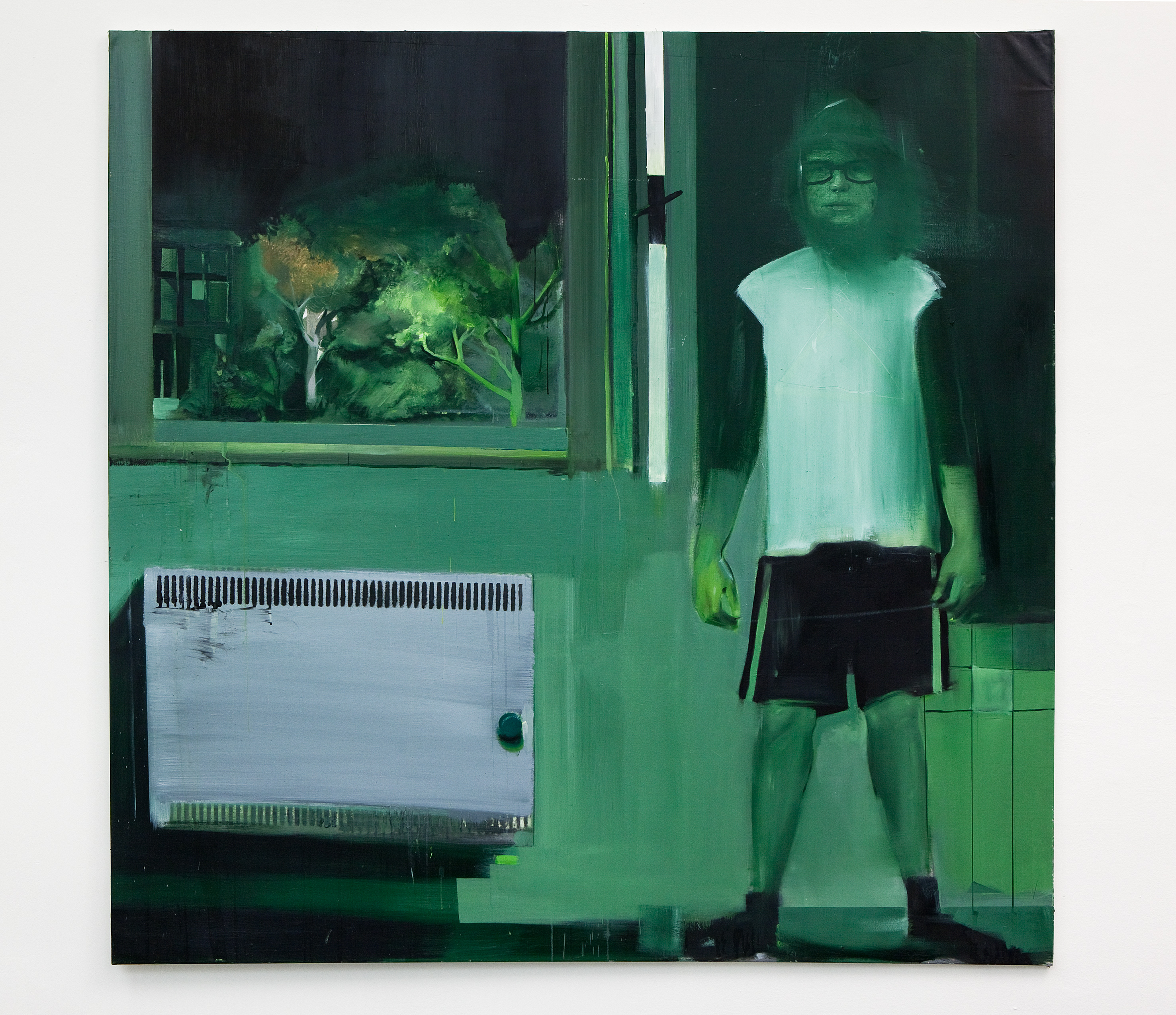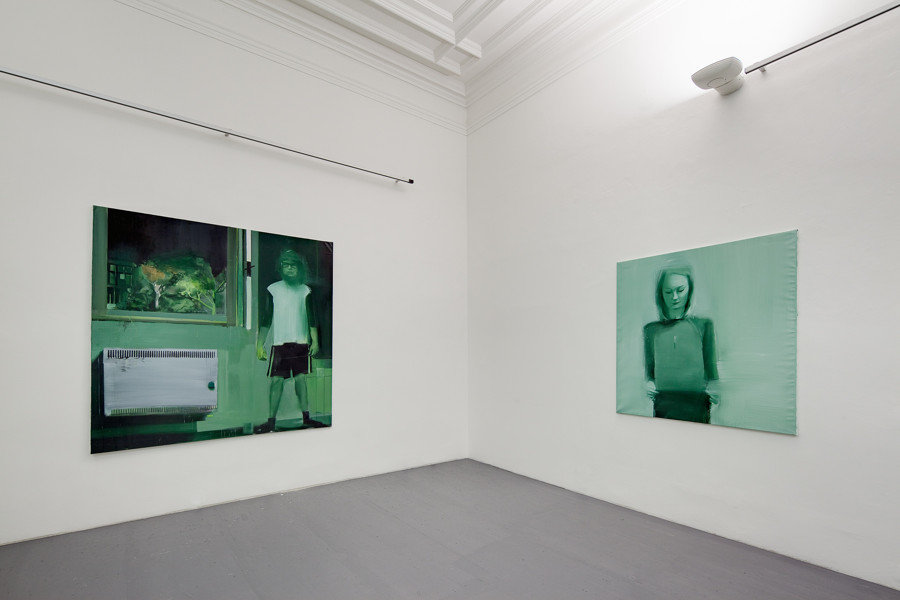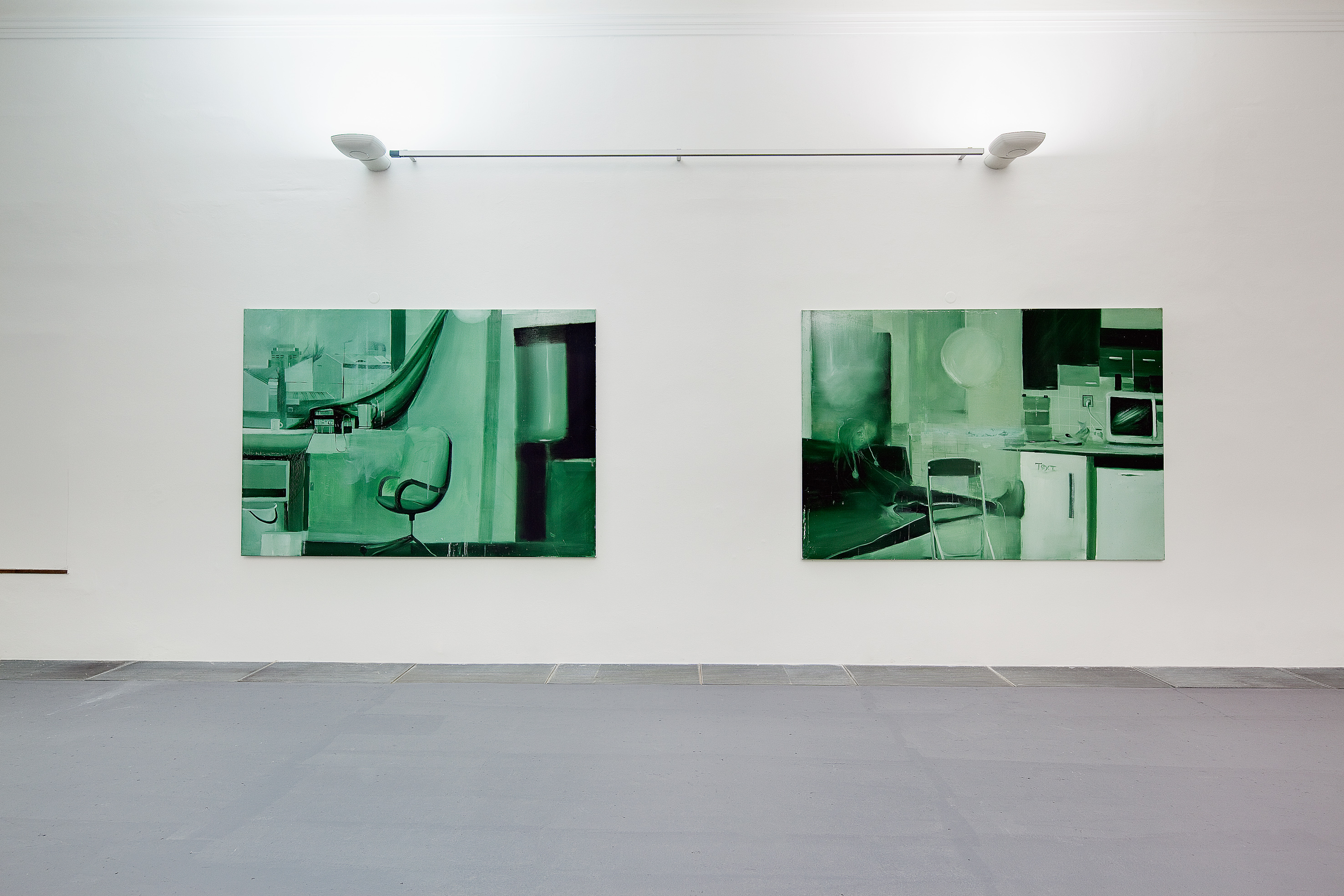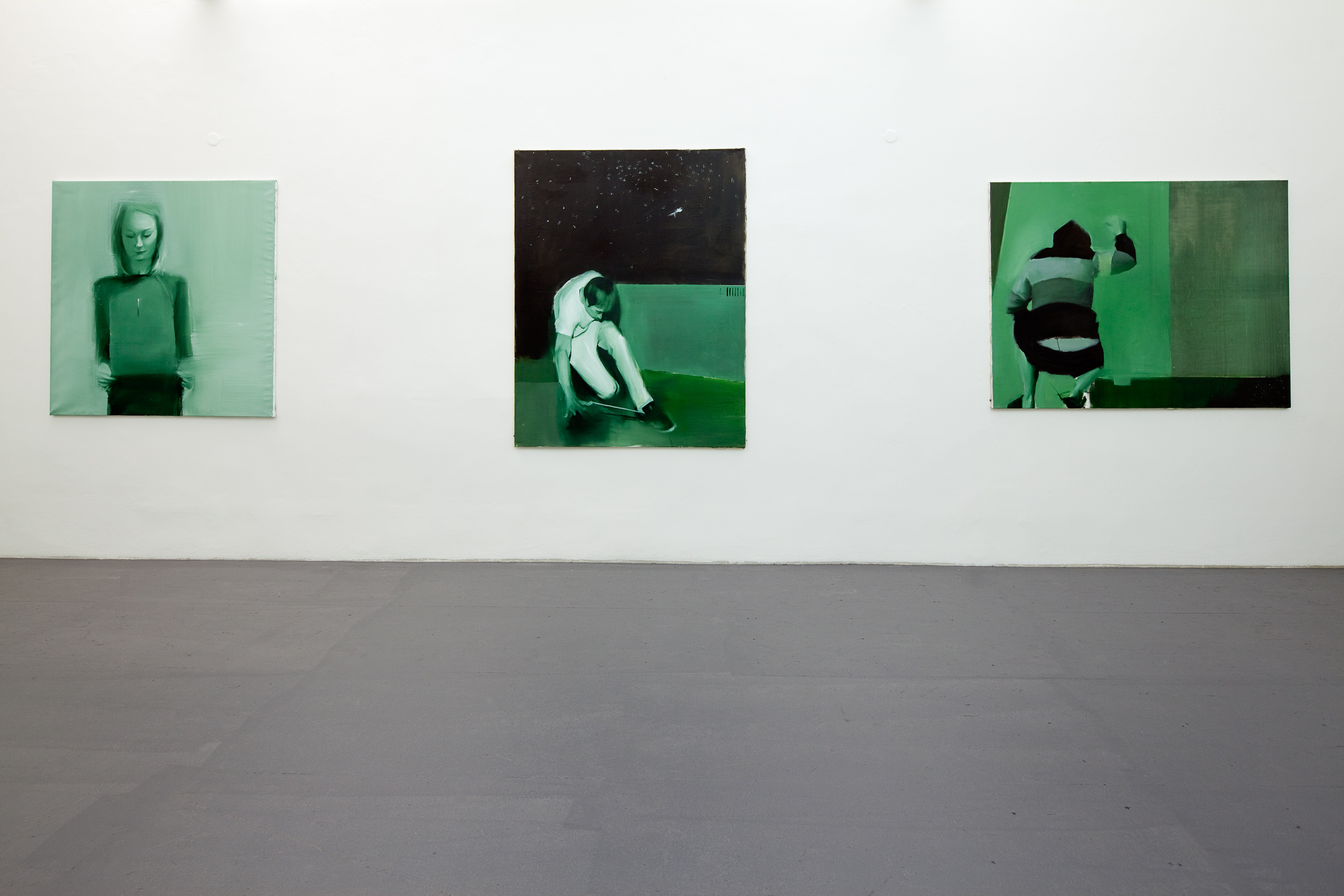 Pro výstavu společně s kurátorkou Olgou Malou vybral některé práce ze své diplomní série a doplnil je novými obrazy. Ačkoli Jakub Hubálek pracuje s olejem, tedy s disciplínou tradičně vázanou na barvu, na vystavených obrazech barevnou škálu výrazně redukuje – všechny jsou laděny do černozelené. Tato monochromní tendence se projevovala už v Hubálkových školních kresbách a přešla pak i do malby.